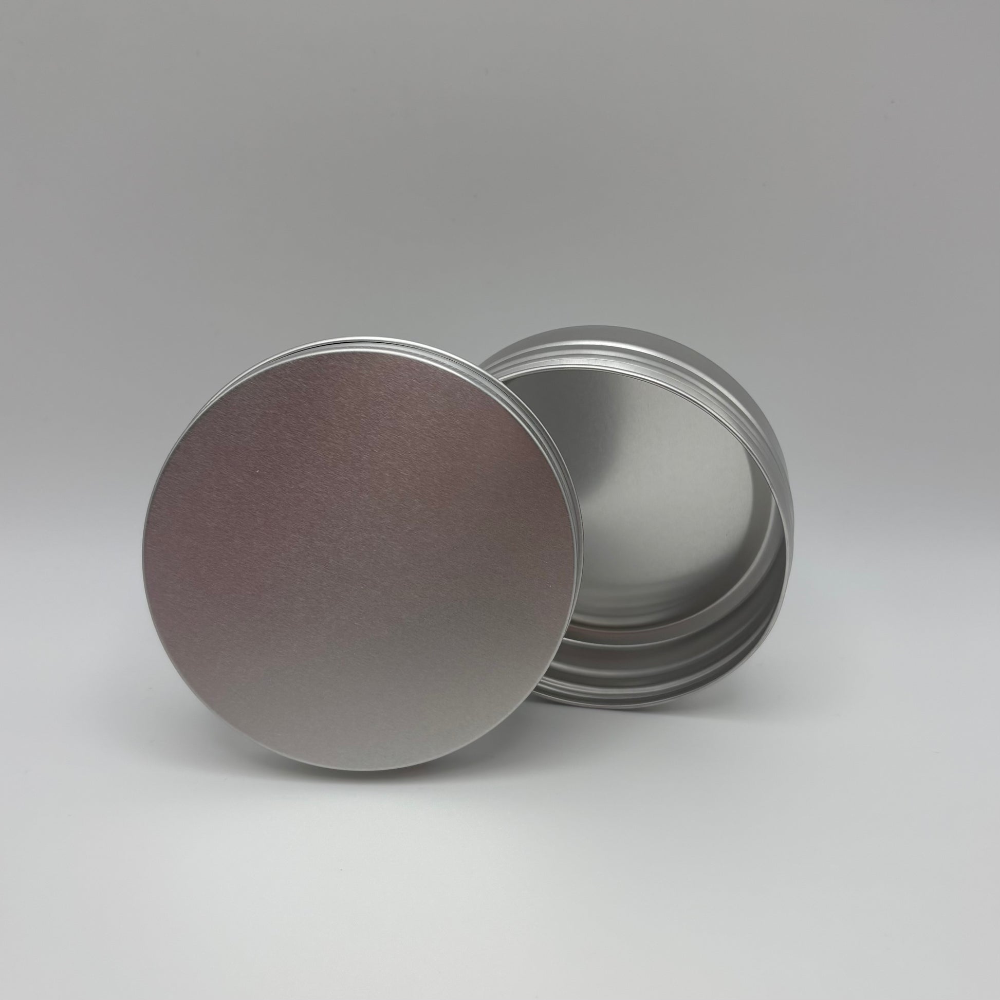 Round aluminium tin with EPE lined screw lid.